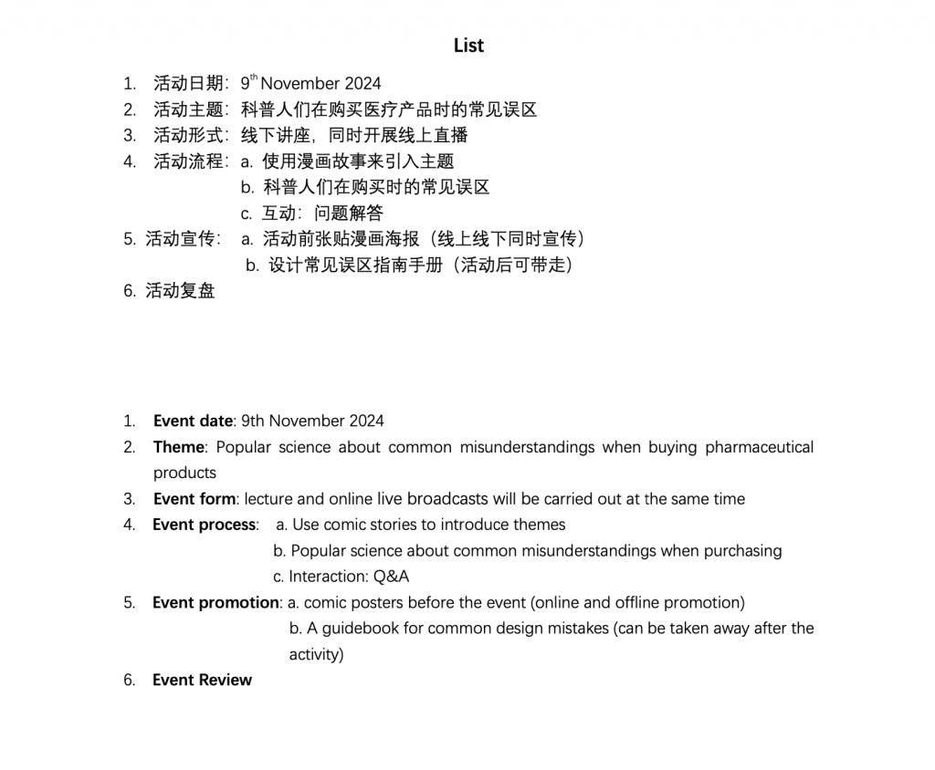 The 14 bottles of pharmaceutical products that were left represent the recognition of this event by these participants, which also gave me a lot of confidence. In the future, I will make these 14 bottles of products into recycling bins, hoping that it can be used as a symbol to attract more target stakeholders to learn about relevant knowledge and even participate in later activities.