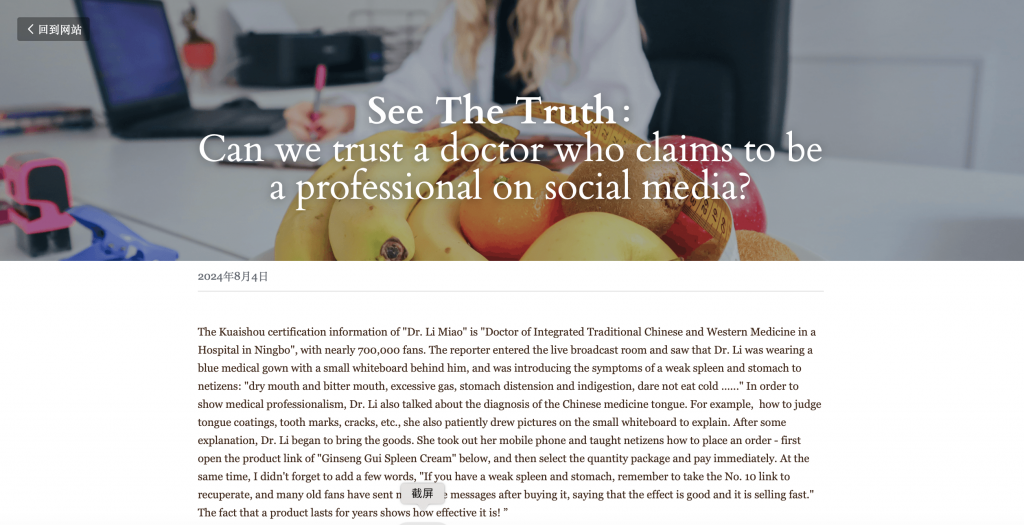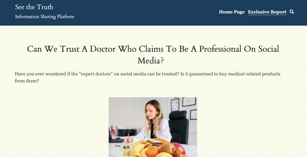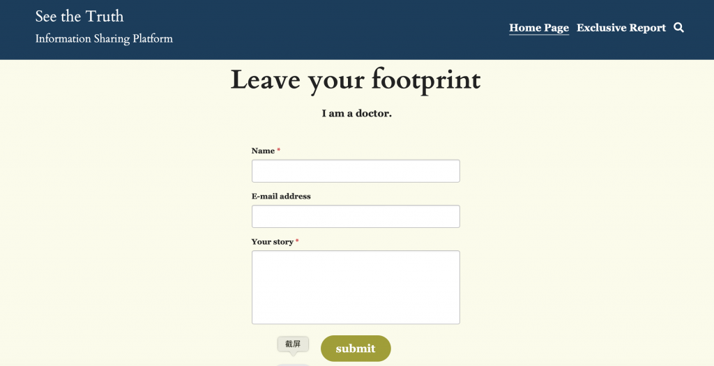 - The website consists of two parts. The first is the message board, where people can choose their identity, doctor or consumer, and leave their stories.